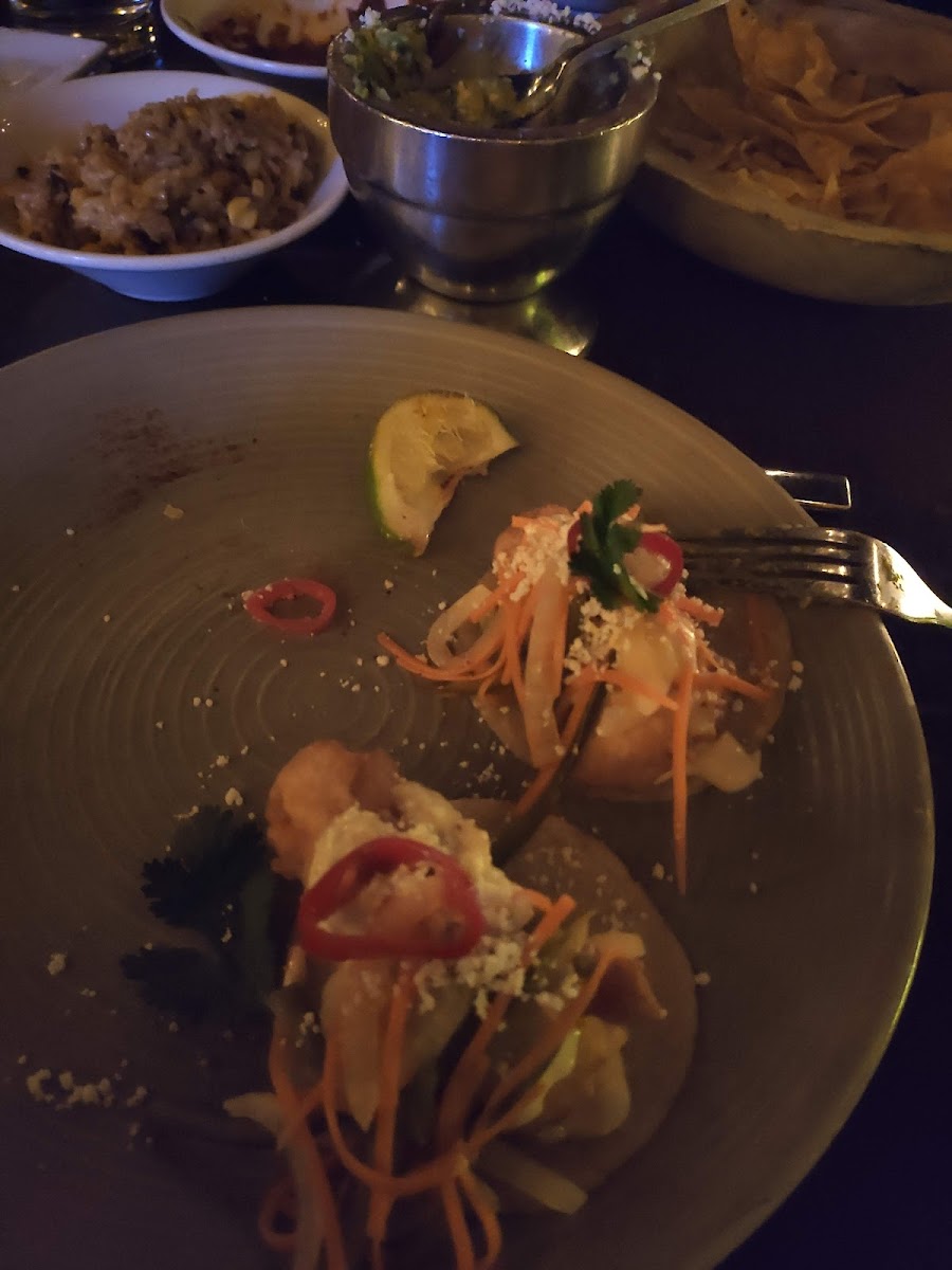 Best tacos I have had in a while! The atmosphere was really fun and lots of cool seating areas. I loved the table side guacamole making. The server was very kind and professional. It was really great for a family event. It was a tad loud for the older people in the group, but definitely manageable.